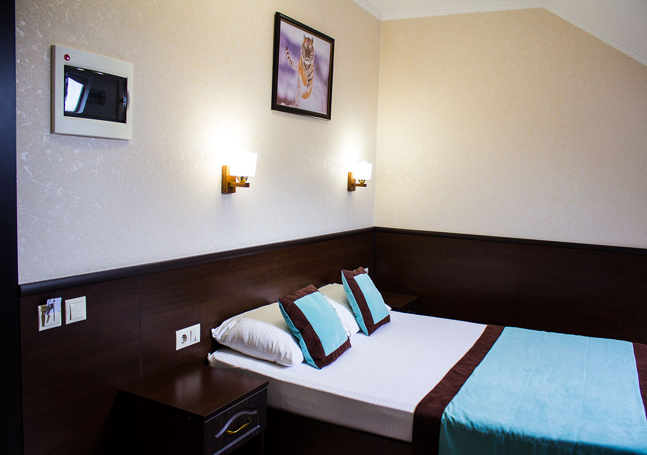 В каждом номере: сплит-система, холодильник, сейф, телефон, фен, ЖК телевизор, санузел - душ, Интернет Wi-Fi, москитные сетки.